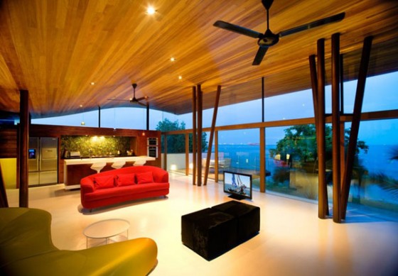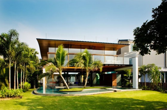 Singapore home design with luxury and modern interiors. Singapore is a small country and is one of the modern state in southeast asia. Some design houses in singapore house design modern style and luxury. The design of this house is unique, because it provides a natural atmosphere but using luxury interiors and exotic designs. In addition, this luxury home just built with solid wood as its main ingredient. While in the window, made ??a U-shaped acrylic material that allows natural light diffuses in and can see the view out to the pool. Singapore home design with luxury and modern interiors also have a unique roof. Waves with a grass roof on it, and grass can be a relaxing place on the roof, and roof with grass that can enhance the experience of home with luxury and modern interiors. Singapore home design with luxury and modern interiors may be your choice in your favorite home design.